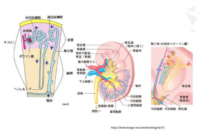 それぞれが異なる役割を担い、体内の水分・電解質バランスを保ちつつ、老廃物を排出するはたらきをしているのです。