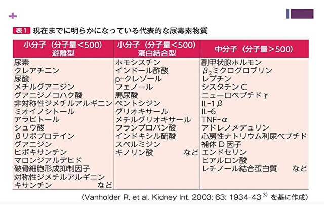 ※ここで紹介している尿毒素の分類は代表的なものです。現在ではさらに多くの物質が尿毒素として認定されていますが、大枠を理解するうえでの目安としてご覧ください。