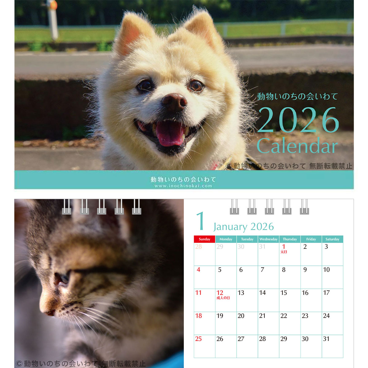 「動物いのちの会いわて」が販売している2026年版カレンダー。