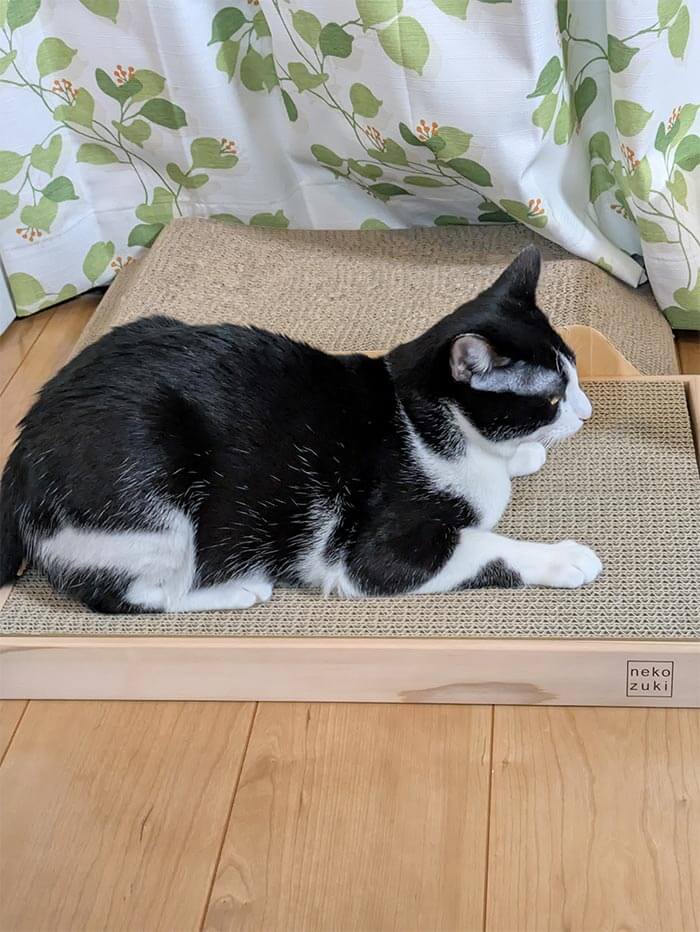 爪とぎ開発のきっかけは、nekozuki 初代ネコ社員なるとさんでした。