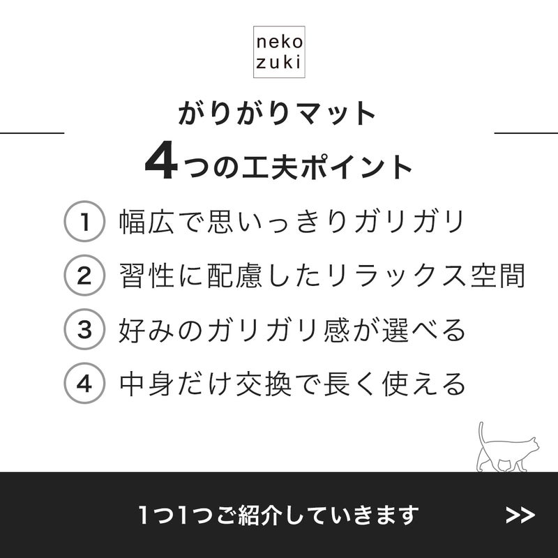環境にも優しく、丈夫で長く使える「がりがりマット」は、頻繁に買い替える必要がなく、ネコさんも安心して愛用でき、廃棄物の削減にもつながります。