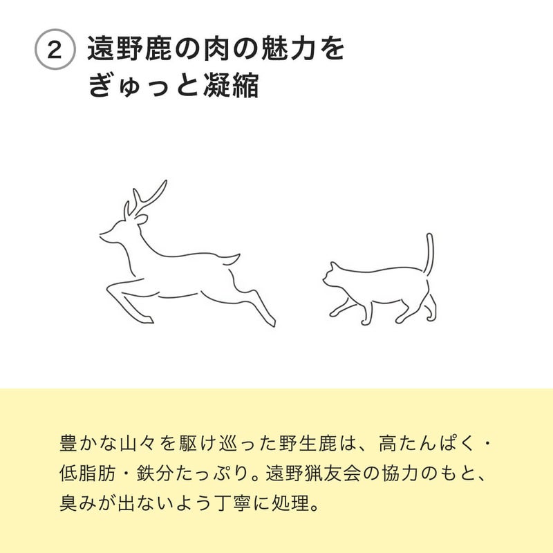 化学飼料とは無縁の野生の遠野鹿。塩分、着色料や保存料は使わず、ネコさんが安心して食べられるシンプルなふりかけです。