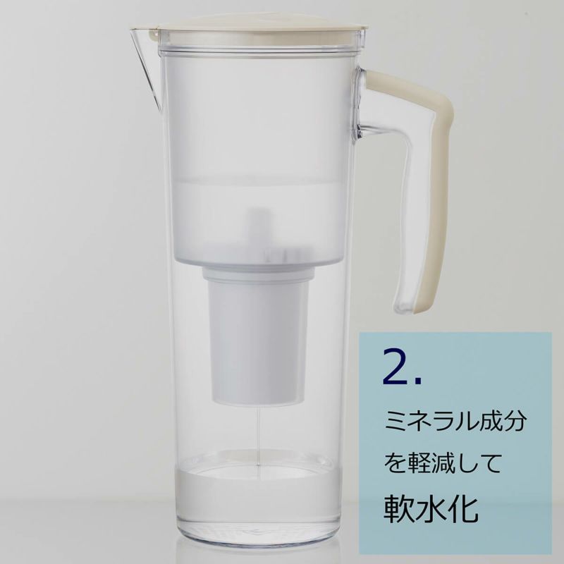 ポイント1 水道水に含まれる「カルシウム」と「マグネシウム」を軽減し、硬度0の軟水に