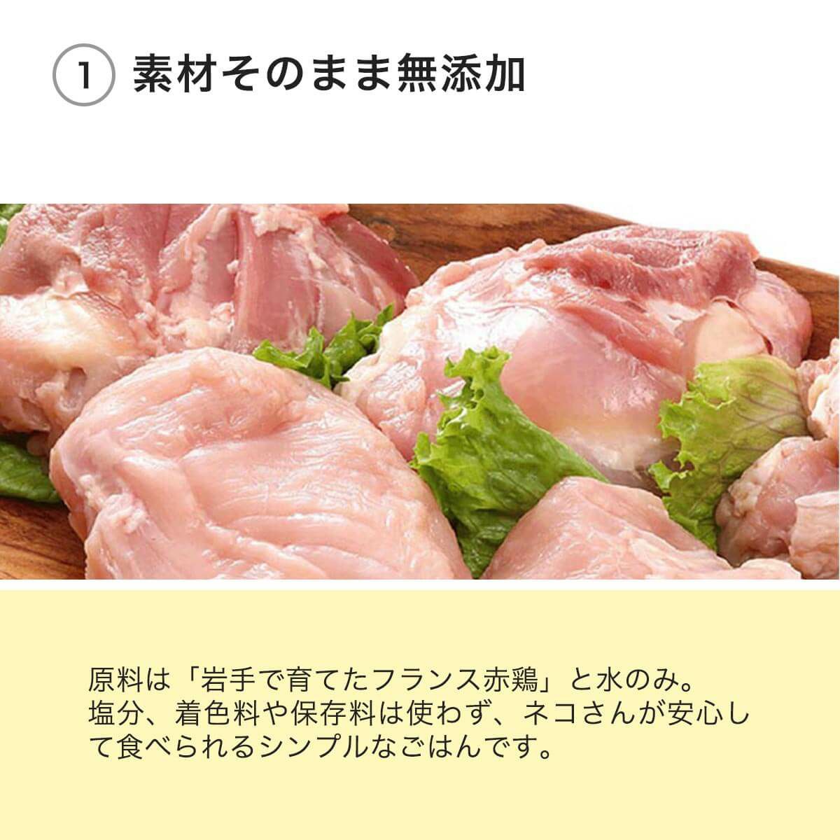 他の画像を見る 原料は「岩手で育てたフランス赤鶏」と水のみ。素材本来の美味しさが楽しめる、無添加のシンプルなウェットフードです。 ねこずきのごはん 岩手で育てたフランス赤鶏 1缶(80g) 日本製 新商品 価格 ¥ 590 税込 お気に入りに登録する