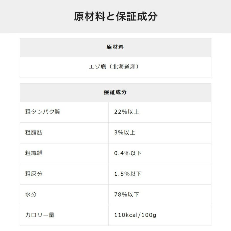 原料は食肉用の「赤身鹿肉(エゾシカ)」と水のみ。