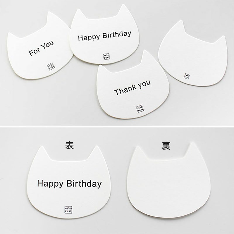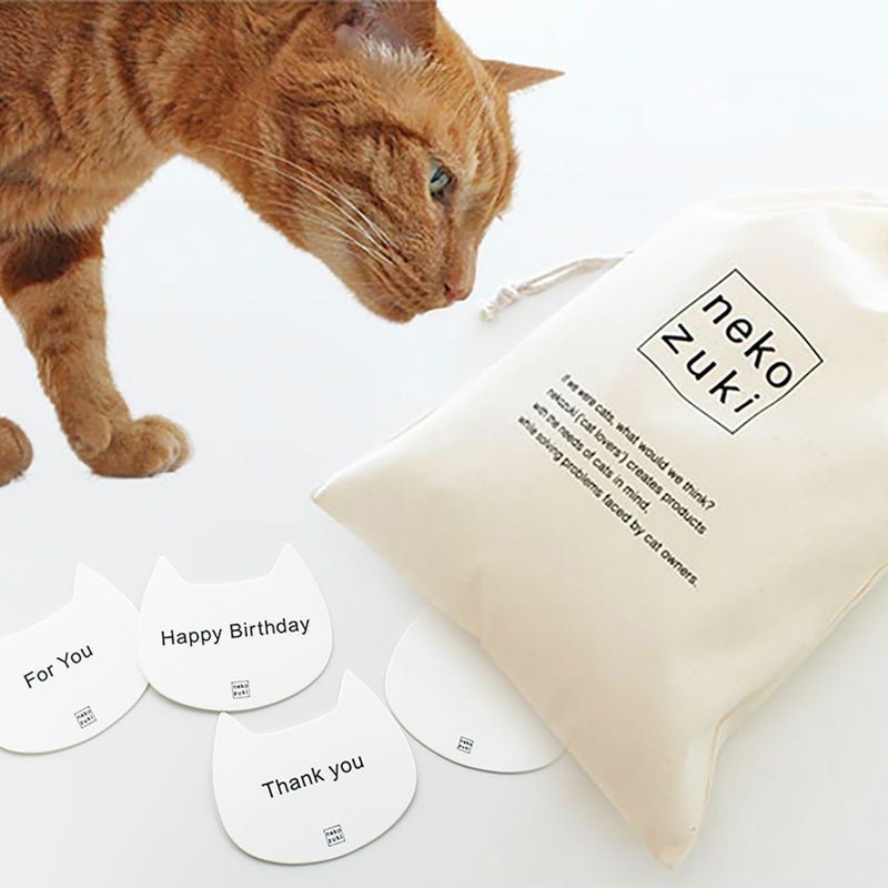 ギフトラッピングを注文された方には、ネコ型のメッセージカードを1枚お付けします。