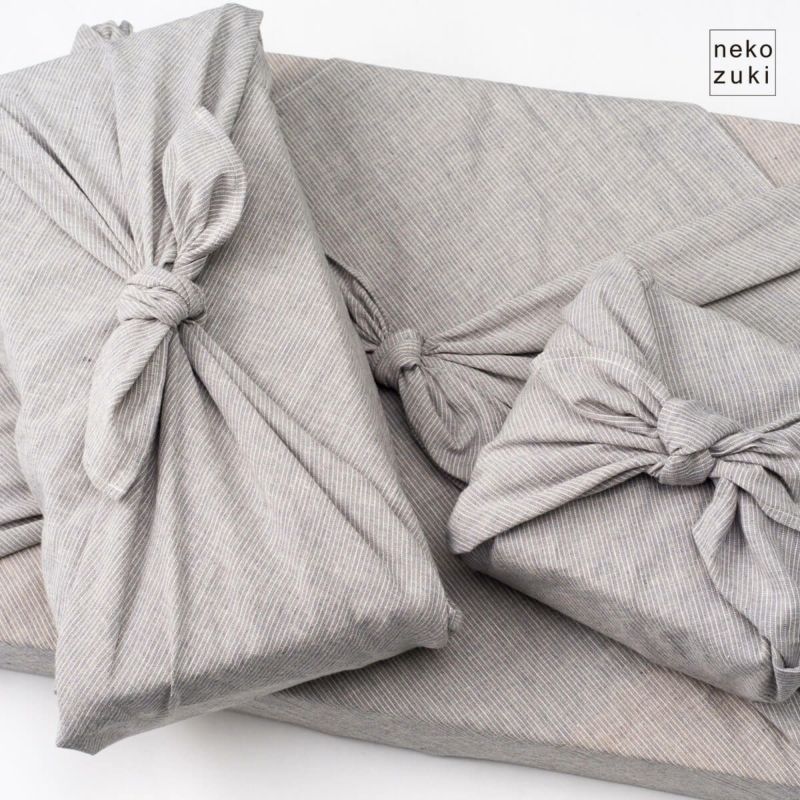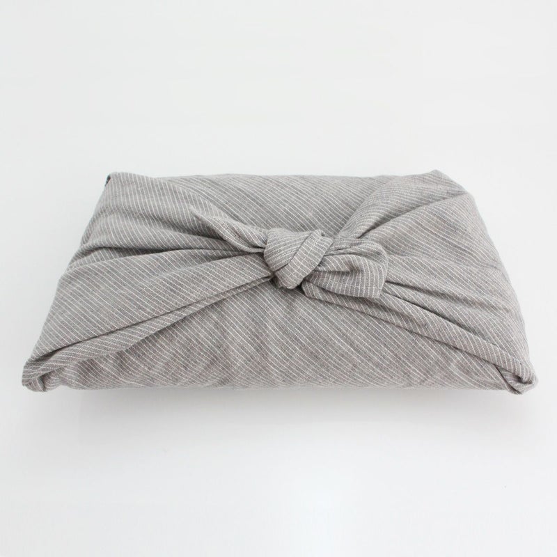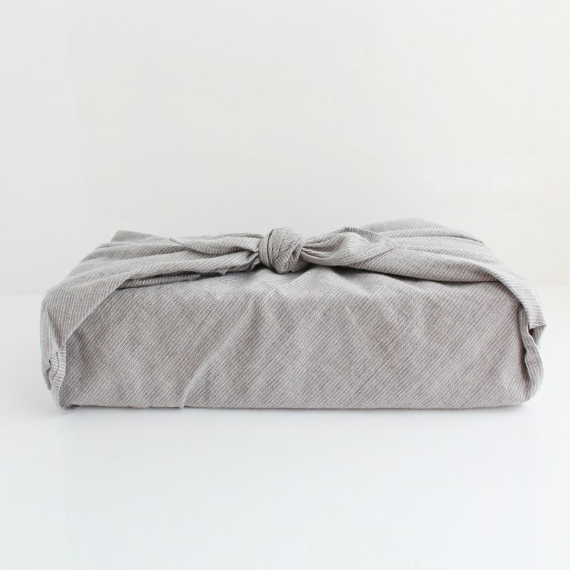 国産のオーガニック生地の風呂敷に包んでお届けします。
