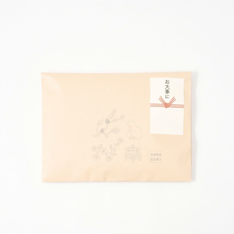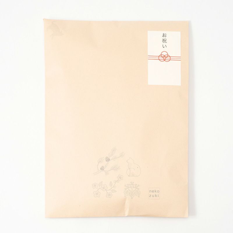 お選びいただいたお品の大きさ、カタチに合わせてラッピングさせていただきます。 猫さんがドアから出入りしたパターンのクラフト包装をご用意いたしました。熨斗をご希望の方はギフトラッピング商品をお買い求めください。