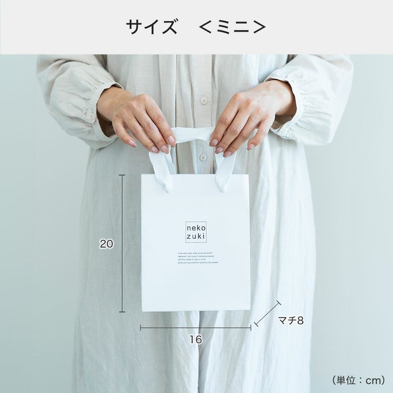 ミニ 縦:約20cm 横:約16cm マチ:8cm(縦長) 小 縦:約35.5cm 横:約20.5cm マチ:10cm(縦長) 中 縦:約32cm 横:約45cm マチ:13.5cm(横長)