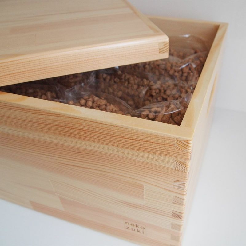 猫さんの大切なおもちゃをしまうお宝収納ボックス、 毎日つかう猫砂や猫トイレスコップをしまうトイレまわり快適収納ボックス、 グルーミングブラシや爪きり、ケアスプレーなどを整理整頓するケアアイテム収納ボックス、 アイデア次第で使い方は無限大。 T-Box(てぃーぼっくす)収納ボックスの材料に使用したのは岩手県産の南部アカマツ。 水車にも使われるほど水に強い岩手県産南部アカマツをぜいたくに使った木製収納ボックスです。インテリアになじむ、シンプルでおしゃれなデザインとなっております。 T-Box(てぃーぼっくす)収納ボックスに使用したナンブアカマツはつやがあり暖かく温もりある手触りが特徴です。