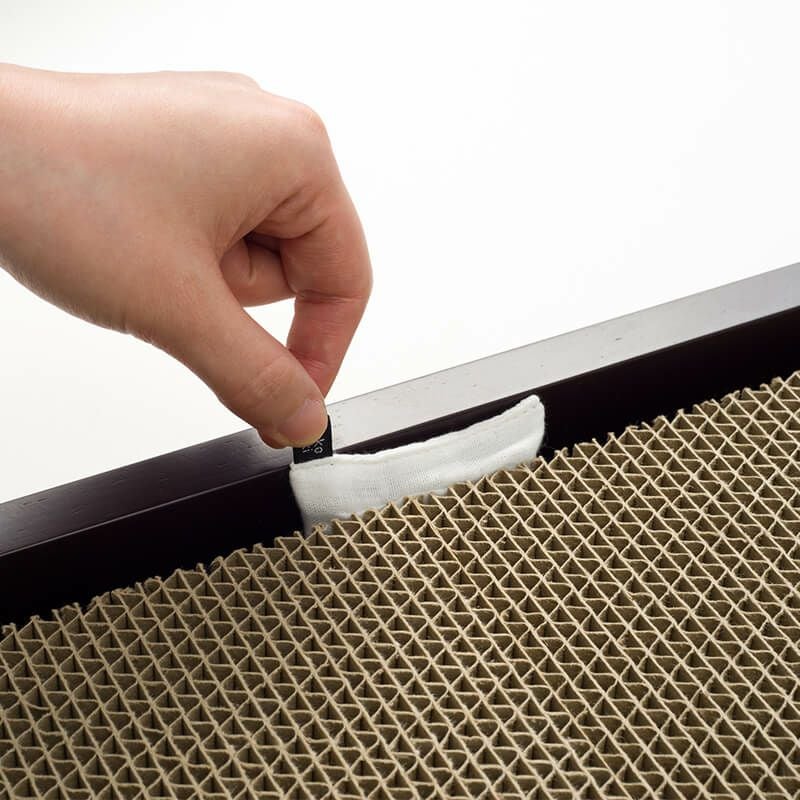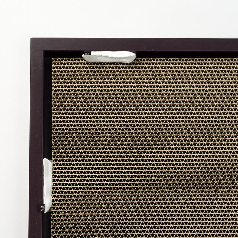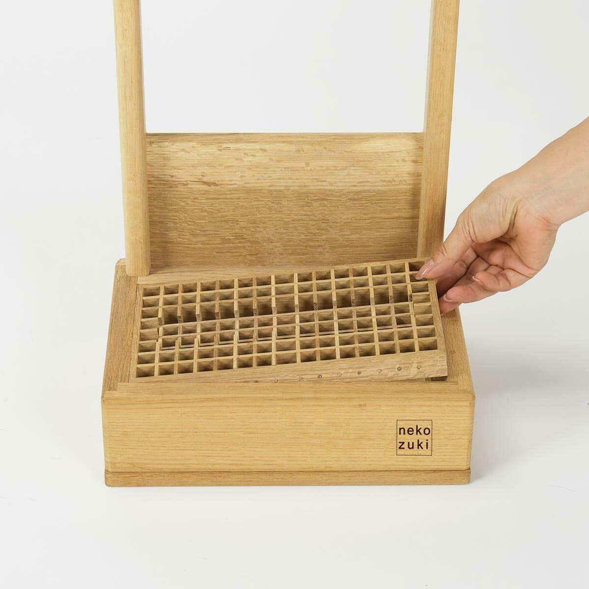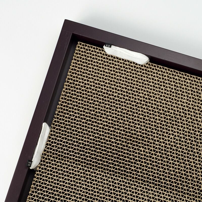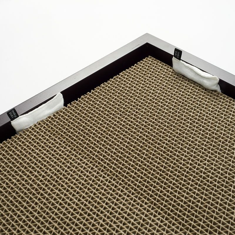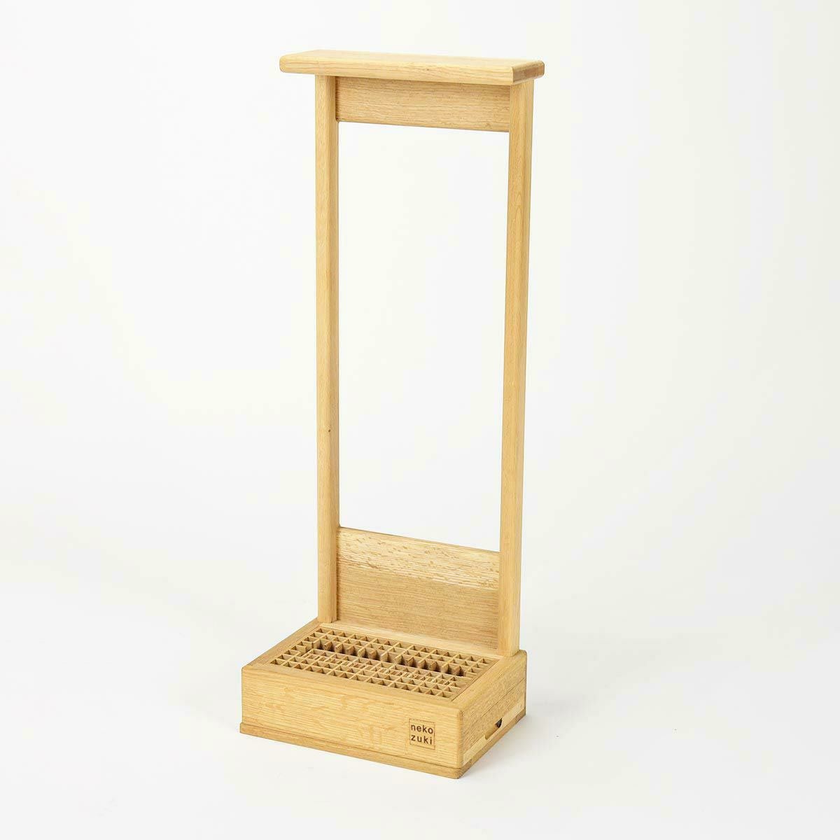 床置き型の爪とぎ『がりがりボード』はダンボールを2枚横並びに設置するので、ネコがのびのびと爪とぎできストレス解消。子猫から高齢猫までずっと長く使える国産の木製家具です。