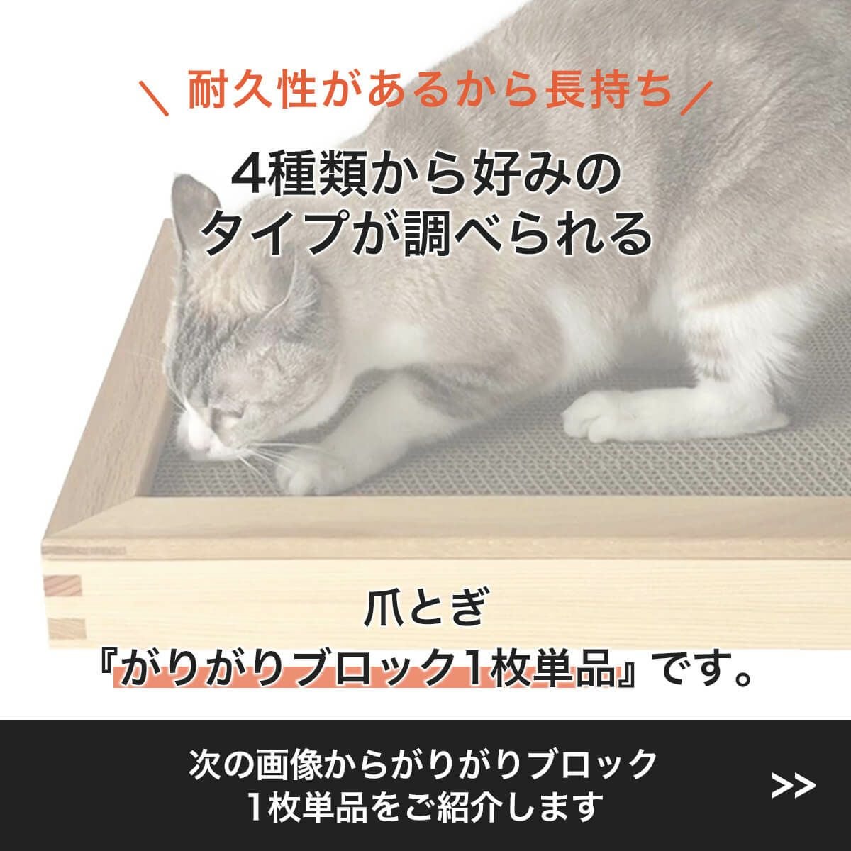 爪とぎ段ボール『がりがりブロック』は堅め素材でゴミがでにくく耐久性があるから長持ち。