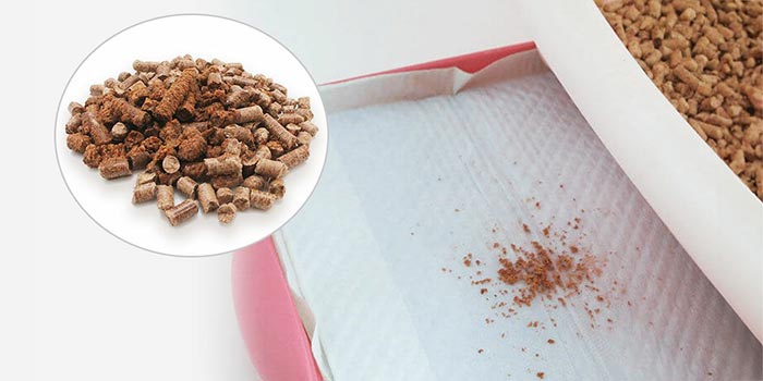 A.固める物質が添加されていない無添加の猫砂のため、おしっこで濡れた部分は崩れ、おがくず状になります。どんなタイプの猫トイレでもご利用いただけますが、すのこ式トイレがオススメです。