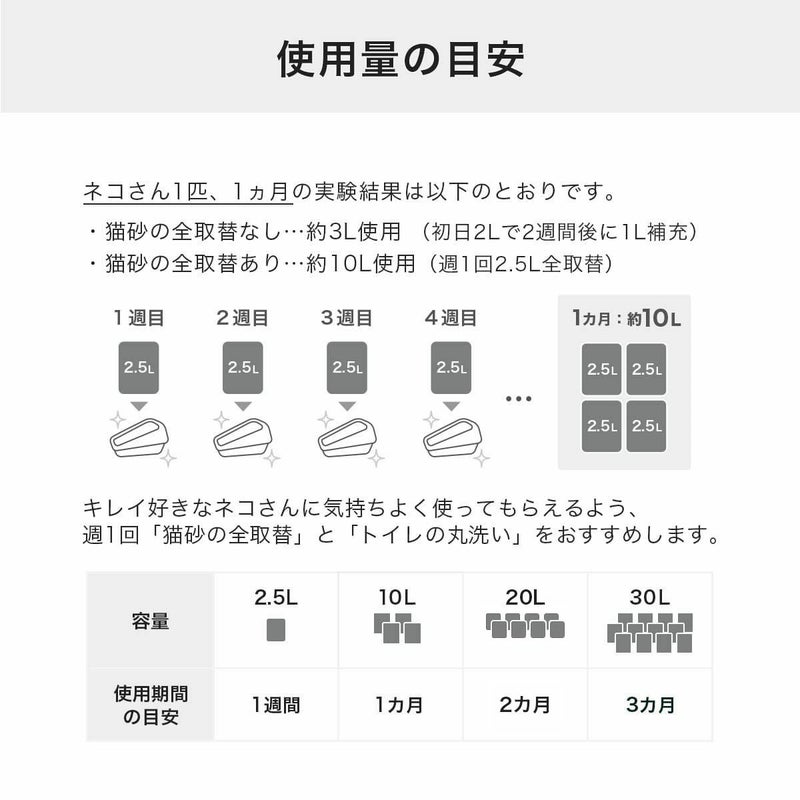 ※トイレの種類やネコさんの個体差により使用量は変わります。
