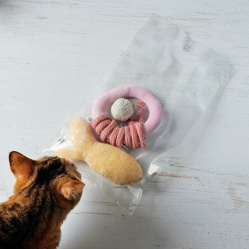 数量限定!くらげじゃらし・ころころファブリック・ねずみの人気おもちゃ3点セット。国産グッズでストレス解消!猫が喜ぶおもちゃ。シンプルでオシャレな猫おもちゃはギフトにも◎ ねこずき三ツ星おもちゃ3点セット・ねずみ篇