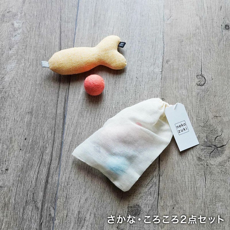 数量限定!くらげじゃらし・ころころファブリック・さかなLARGEの人気おもちゃ3点セット。国産グッズでストレス解消!猫が喜ぶおもちゃ。シンプルでオシャレな猫おもちゃはギフトにも◎ ねこずき三ツ星おもちゃ3点セット・さかなL篇