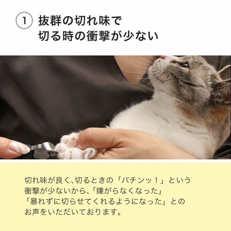 爪切り初心者にもオススメのニッパータイプは切る部分が見えるから、どこを切れば良いのかわかりやすく深爪の心配がなく安心です。抜群の切れ味で1ミリ単位で爪を切ることができます。ネコさんの様子を確認しながら少しづつ切りすすめることができます。『ネコさんの爪切りは初めて』という方にもオススメです。ギロチンタイプを使っていた方もニッパータイプの使いやすさに驚く方も多いです。