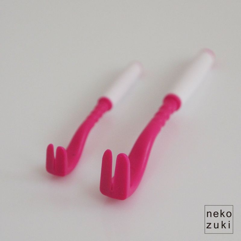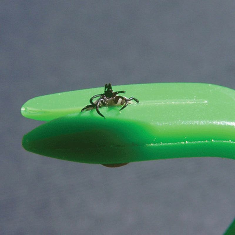 ダニツイスターのV字部分にダニが掴まれるとダニの体に対し圧力が全くかからない為、ダニの体液がでてペット の体内に逆流する危険性を軽減します。親指と人差し指でつかみやすい形状。フォーク型でV字型のスペース部分が色々なサイズのダニに対応します。