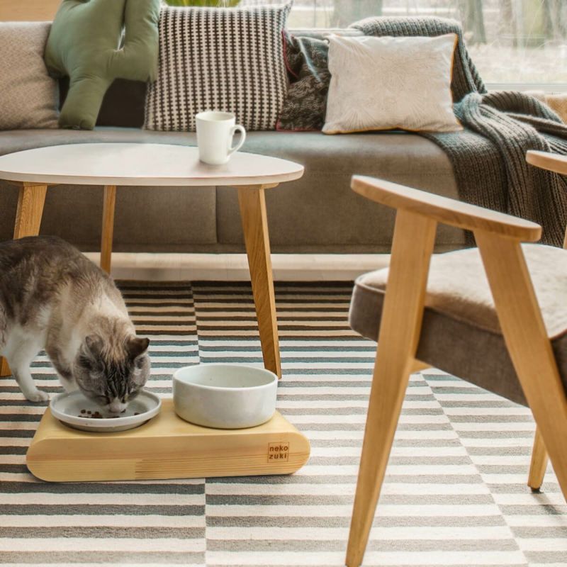 NEKOZUKIのまんま台を購入しました♪高さもちょうど良く、食べやすそうです。ヘルスウォーターボールMからの水飲みは、ガッツリ飲み干してくれます。最高!部屋のインテリアとして、フローリングにもマッチしています。