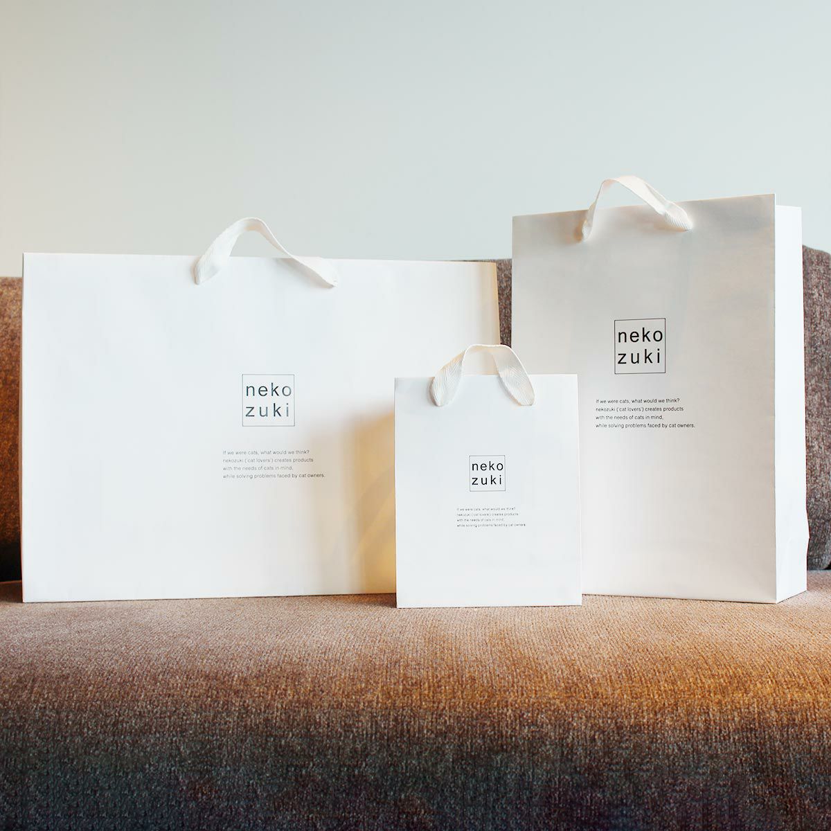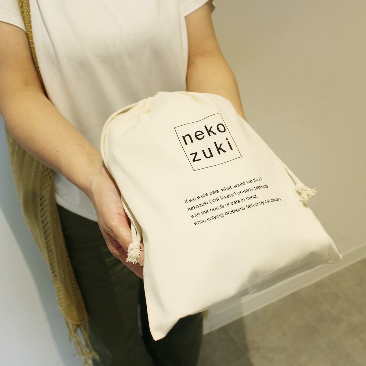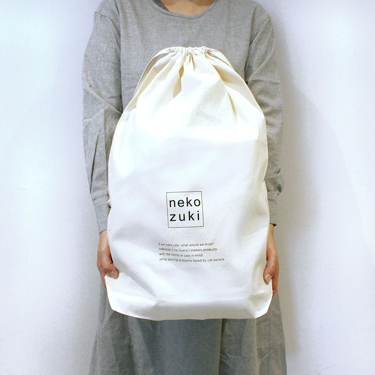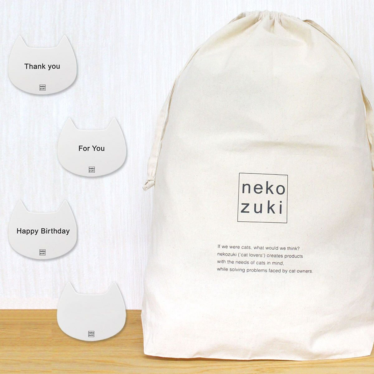 大切なネコさんへ心を込めた贈り物を。nekozukiロゴの巾着袋に入れてお届けいたします。 ギフトラッピング 巾着L